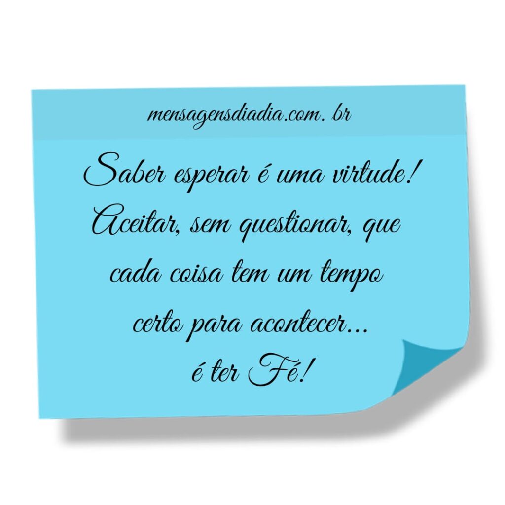Saber esperar é uma virtude! Aceitar, sem questionar, que cada coisa tem um tempo certo para acontecer é ter Fé!