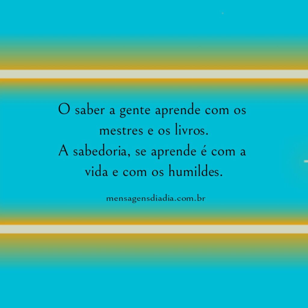 Motivação Maria Odete 15 de janeiro de 2021 0 Imagens, Motivação O saber a gente aprende com os mestres e os livros. A sabedoria, se aprende é com a vida e com os humildes a sabedoriamotivaçãoo saber